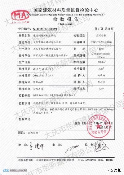 大慶市格新建材有限公司參編的建筑隔墻用保溫條板(GB/T23450-2024)(起草人為我公司鄧?yán)?/p>