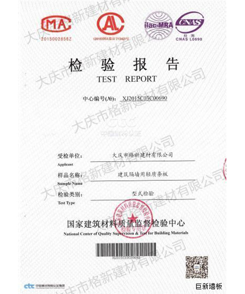 大慶市格新建材有限公司是家以節(jié)能墻體、墻材研發(fā)、生產(chǎn)制造、技術(shù)應(yīng)用推廣、銷售和安裝的技術(shù)企業(yè)。公司位于大慶市龍鳳光明工業(yè)園區(qū),總投資1.2億元,一期投資5000萬(wàn)元,工廠占地面積20000平方米,年產(chǎn)復(fù)合實(shí)芯分室墻板JSFP-90型、分戶墻板JSFP-120型、分戶墻板JSFP-150型、分戶墻板JSFP-200型、保溫墻板WQBPS-150型、保溫墻板WQBPS-200型約200萬(wàn)平方米。